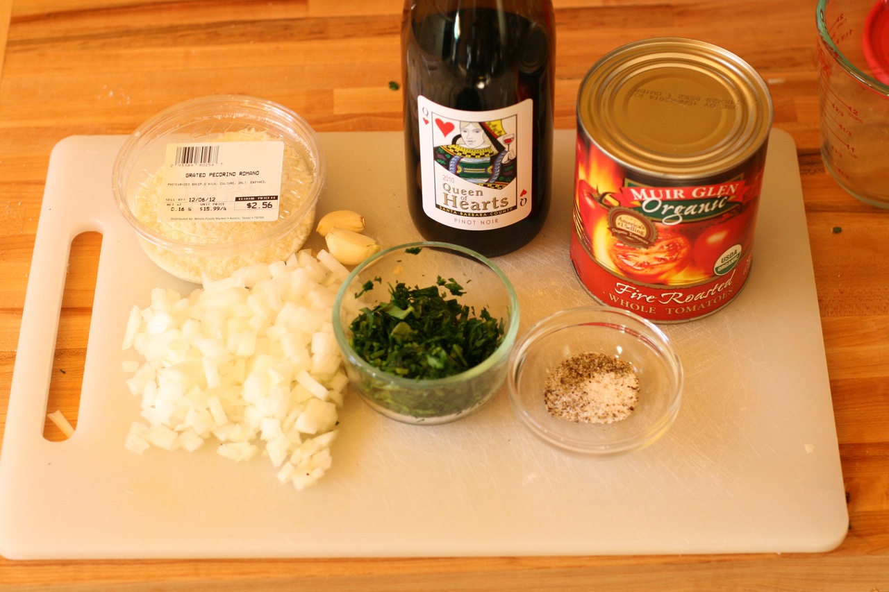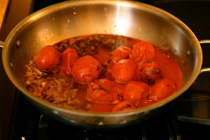 Stir in the tomatoes, parsley, salt, and pepper. CONFESSION: Totally didn’t realize the wine was supposed to evaporate before I added the tomatoes. So no worries if you mess that part up because the sauce totally survives!