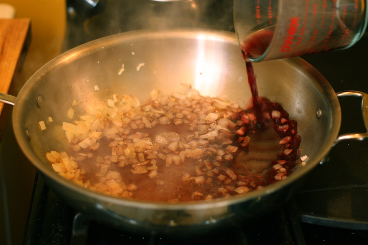 Add the wine and cook on high heat until almost all the liquid evaporates, about 3 minutes.
