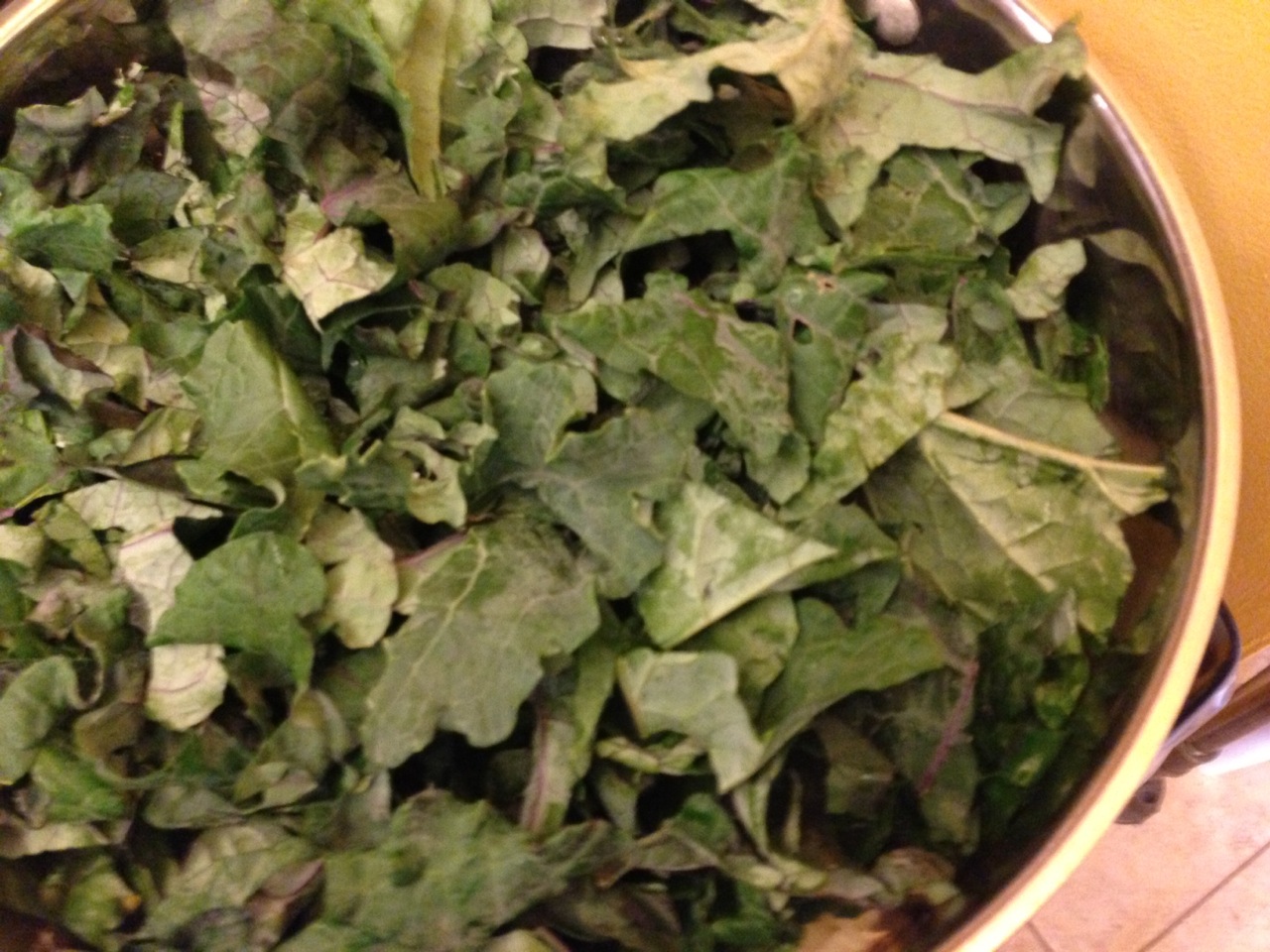 * 2-3 big handfuls of kale, chard or kale leaves, washed, dried and roughly chopped