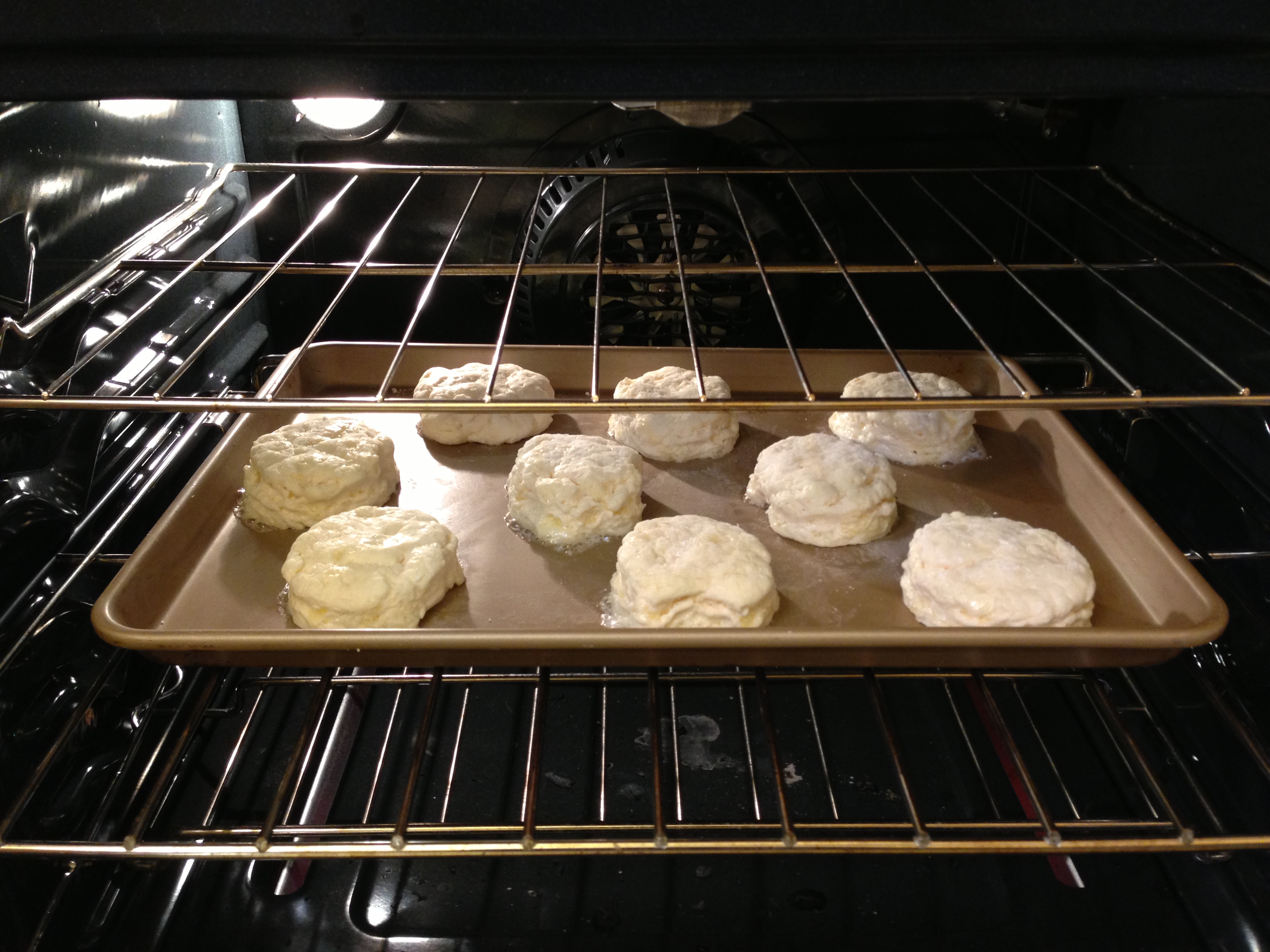 (I forgot to take a photo of the biscuits as I was cutting them out, so I hurried up and opened the oven door to get this shot. Just for you.)