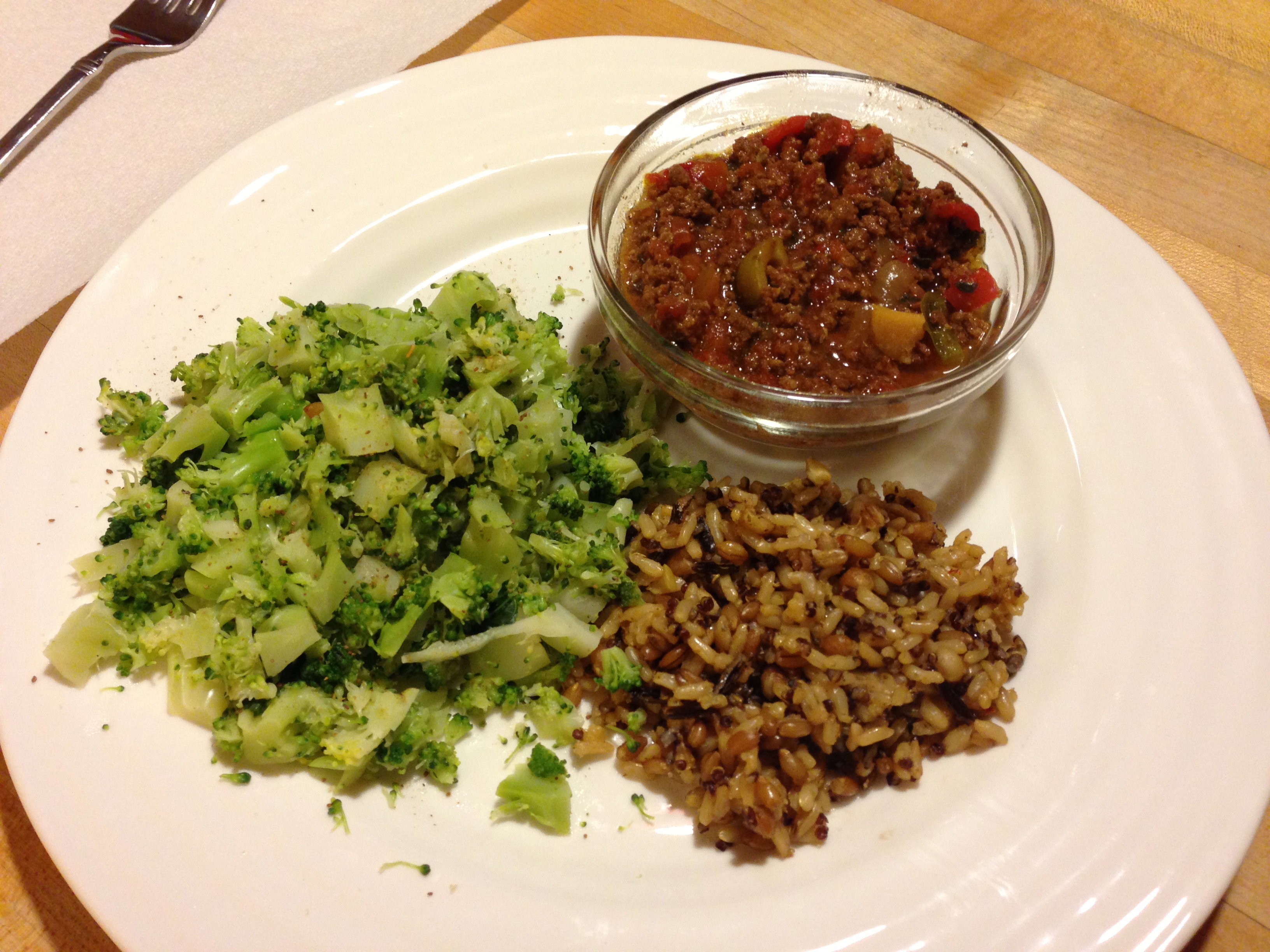 Next up: Skinnytaste’s Crock Pot Picadillo: I love a green olive, so this was right up my alley. I found it to be a tad bit salty (this coming from Mrs. Salt Lick herself), so just be mindful of how much salt you add through the process. I served this up in 1/2 cup servings and ate it over some brown rice (1/2 cup). Add some broccoli and cauliflower tots on the side and you’ve got a satisfying meal. Everything on the plate = 8 points.
