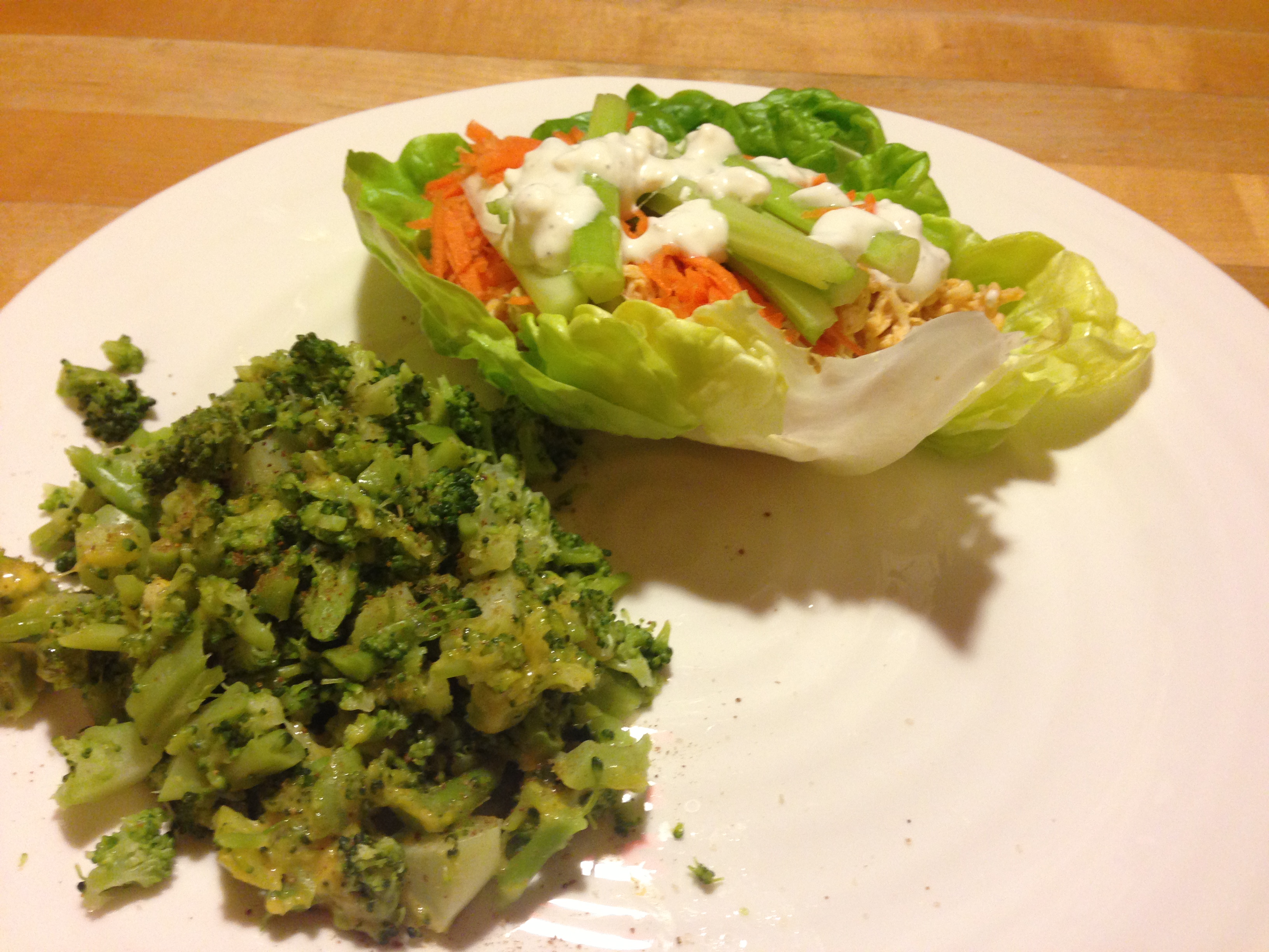 Thankfully, dinner did not disappoint! I tried Skinnytaste’s Crockpot Buffalo Chicken Lettuce Wraps (3)with Low Fat Creamy Blue Cheese Dressing (1). Then I added some broccoli with a little reduced fat cheese (1). Total points? FIVE. Super score because I have room for a cocktail and piece of chocolate now.