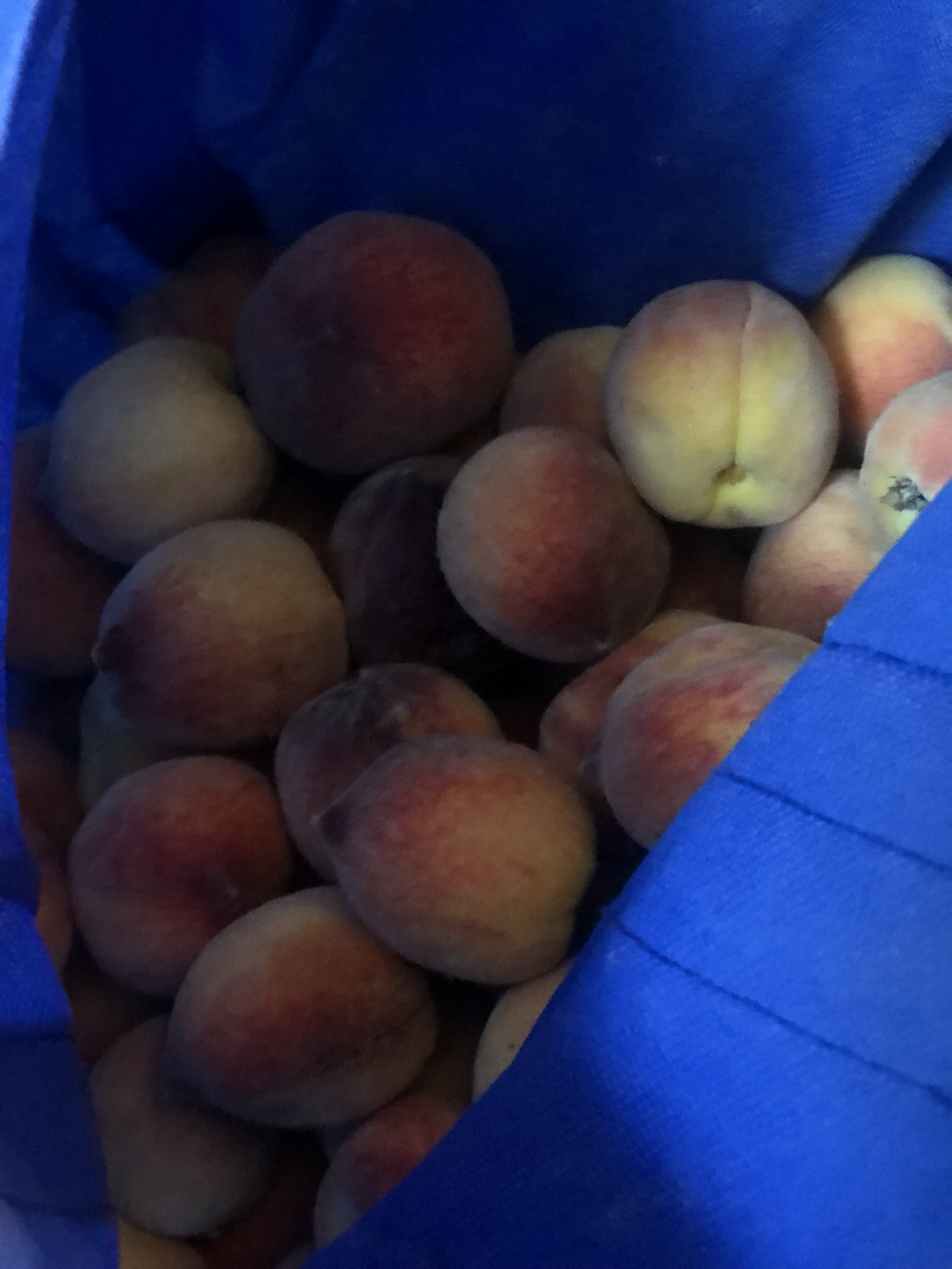 Bonus: I got some peaches from my Mom’s tree in her backyard. I boiled them for like a minute, then threw them in an ice bath, and then rejoiced as the fuzzy peeling just came right off. I cut them up, added some lemon juice, and put them in the freezer so I could have peach smoothies this week.