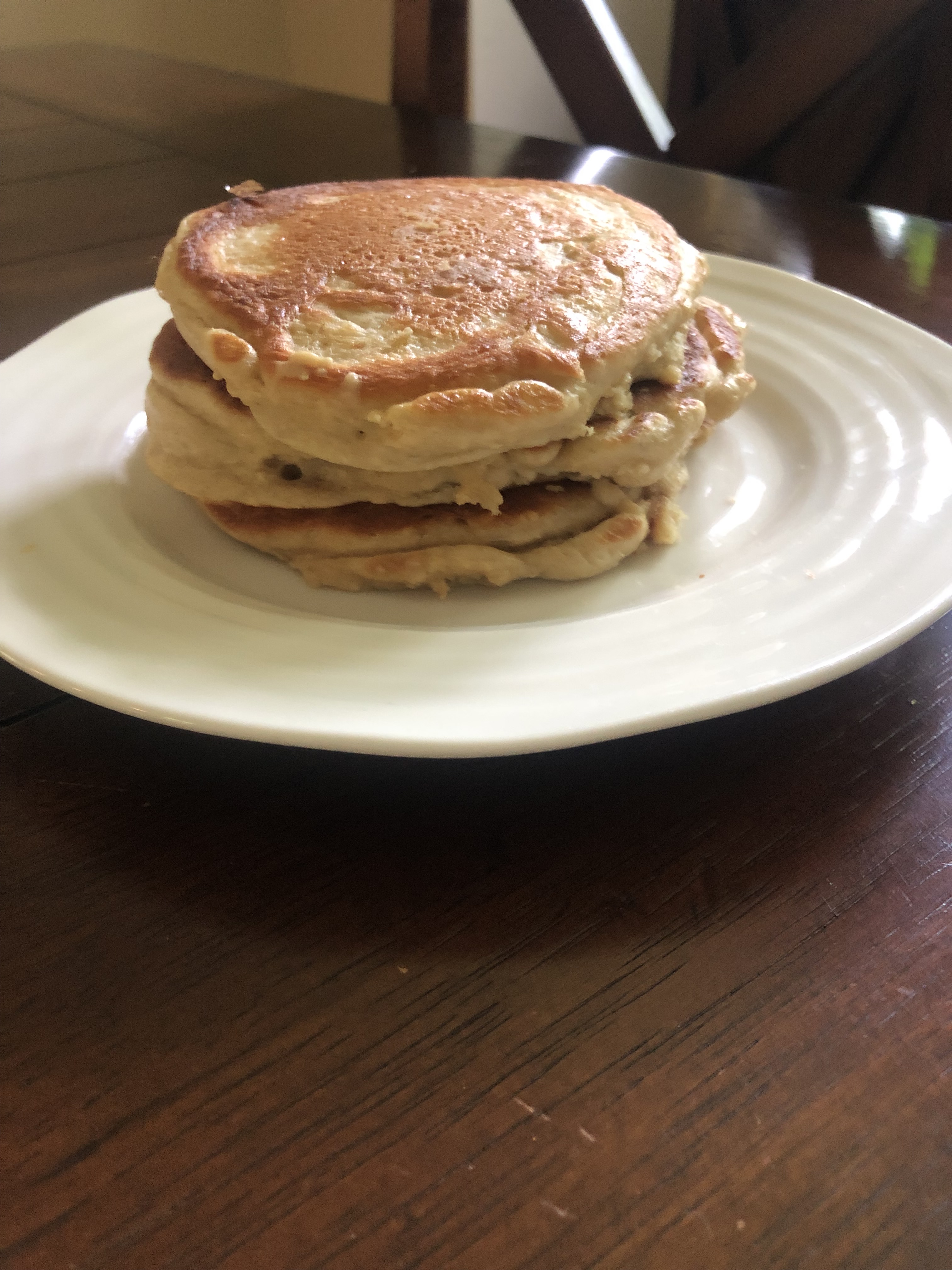 Oh, and I made some protein pancakes for the week. I just put 1 ½ cups of rolled oats, 1 scoop of vanilla protein powder, 3 teaspoons of baking powder, 3 eggs, a splash of almond milk, and ½ cup of cottage cheese (for extra protein) in a blender. Then I pan-fried them in some coconut oil. I’m excited to spread some PB2 on them for breakfasts next week.
