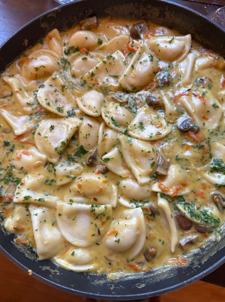 Next up, Anna Chwistek’s Pierogi with Creamy Mushroom Sauce on ServingDumplings.com. I used the smaller pierogies you can find in your freezer section. Again, super easy the kids loved it. I should have served it with steamed green beans or broccoli, but interestingly enough a bowl of this recipe filled the family up!