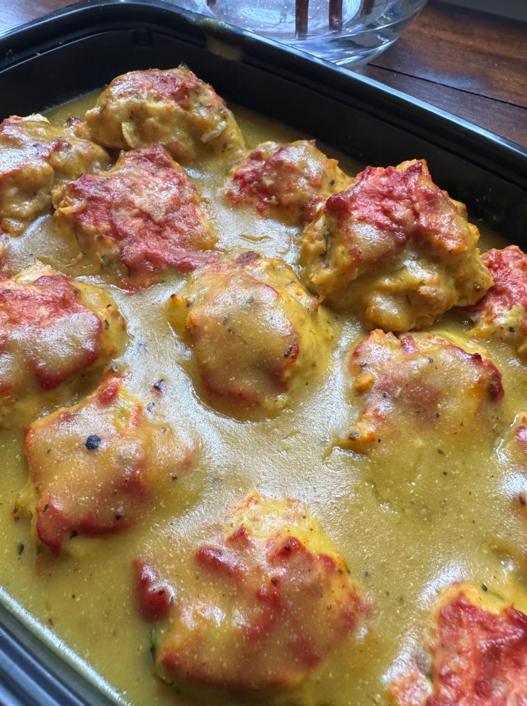 This week, I made Smitten Kitchen’s Baked Chicken Meatballs with jasmine rice and steamed green beans (all made in advance). Not the prettiest photo, but I also made a quick gravy for the meatballs (this was my brilliant idea because I needed something for the rice).